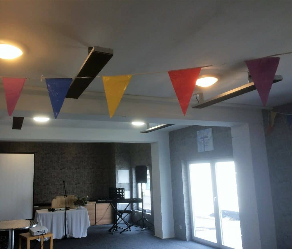 M. Bayense de Kerkrade, aux Pays-Bas, recherchait une solution de chauffage rapide pour sa salle de réunion évangélique. Le chauffage par convection n’était pas une option ici car cet espace est mal isolé et contient de nombreuses sections de verre. De plus, il existe un risque de moisissure.